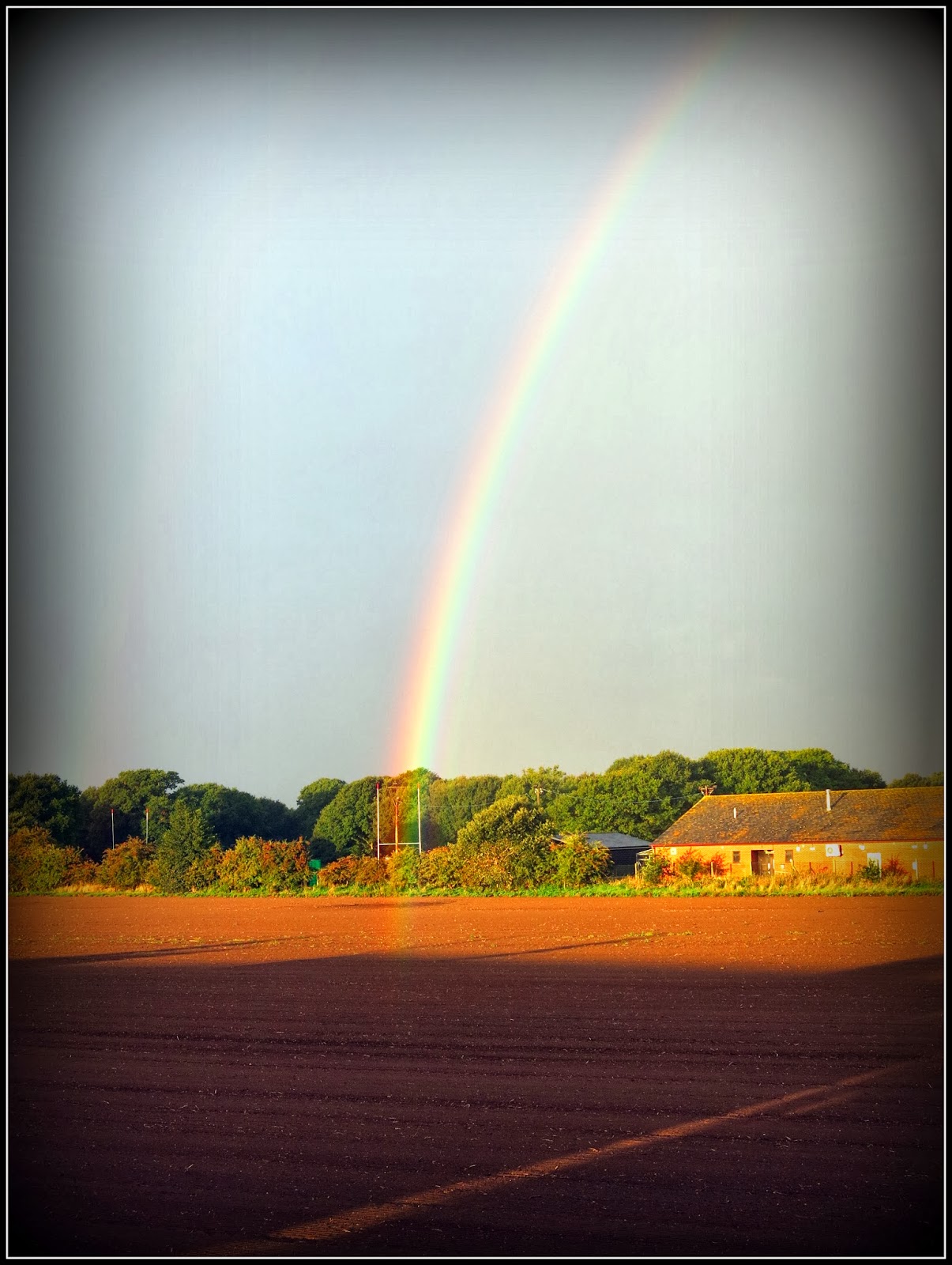 This morning we woke up to this fabulous rainbow that ended in the field at the back of our house. So we rushed out armed with our spades and dug several holes trying to find that 'Pot Of Gold at the End of the Rainbow'. Hubby is still out there digging ten hours later, that's dedication for you (or stupidity)! Will keep you updated on our treasure hunt!